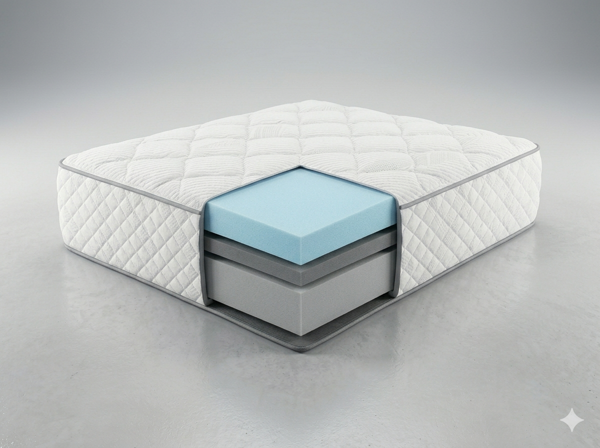 A combination of memory foam comfort layers with a sprung base. Moulds to your body shape while the springs provide underlying support and airflow.